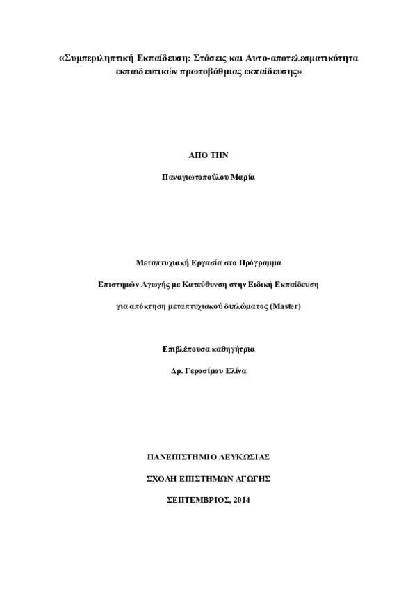 «Συμπεριληπτική Εκπαίδευση: Στάσεις και Αυτο-αποτελεσματικότητα εκπαιδευτικών πρωτοβάθμιας εκπαίδευσης»