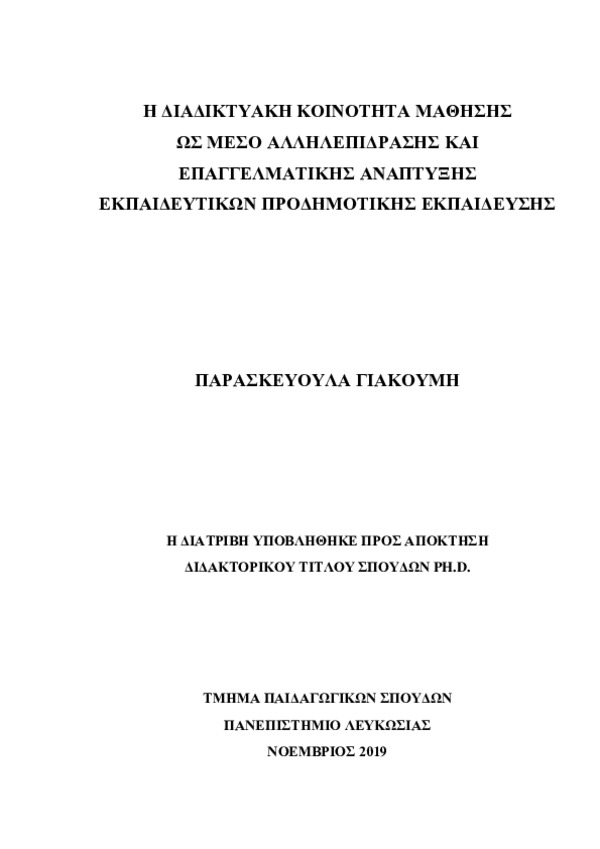 Η Διαδικτυακή Κοινότητα Μάθησης ως μέσο αλληλεπίδρασης και Επαγγελματικής Ανάπτυξης Εκπαιδευτικών Προδημοτικής Εκπαίδευσης