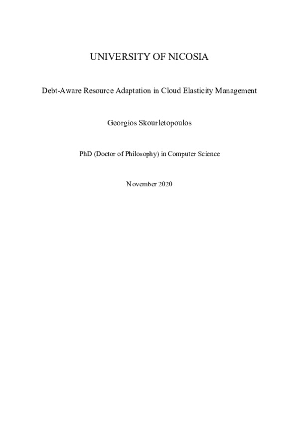 - Cloud computing | Cloud elasticity management | Debt-aware | Elasticity debt | Game theory | Hidden markov model | Multi-tenant software as a service | Resource adaptation | Resource provisioning | Resource utilization | Service composition | Service utility