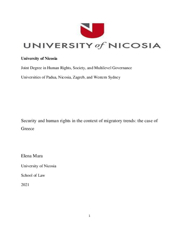 Greece used as a case study to investigate the parameters mentioned above, as a case of durable securitization, which also portrays high levels of human rights deviations. As a case study, Greece's characteristics provide a unique opportunity to examine the birth of securitization, the process and context that sustain securitization into being, and the impact of the imbalance between security and human rights on public security.