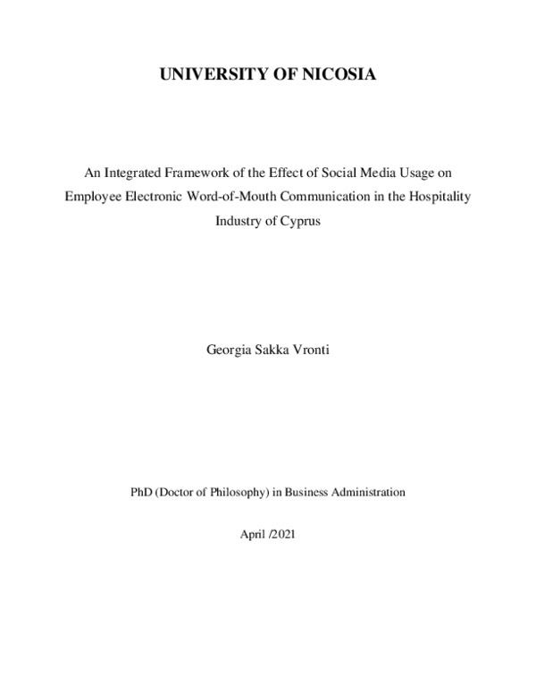An Integrated Framework of the Effect of Social Media Usage on Employee Electronic Word-of-Mouth Communication in the Hospitality Industry of Cyprus