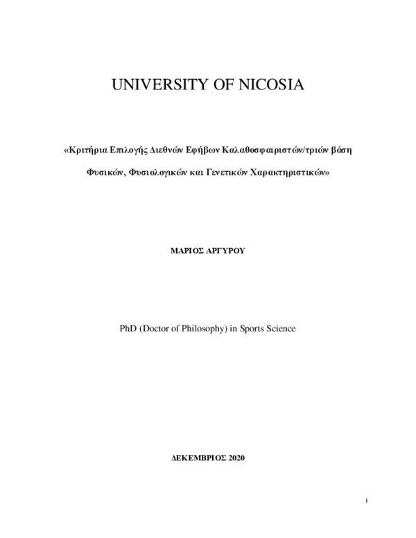 Σκοπό της παρούσας διατριβής αποτέλεσε: (α) η σύγκριση όλων των σωματομετρικών, φυσιολογικών και τεχνικών χαρακτηριστικών Κυπρίων καλαθοσφαιριστών/τριών ηλικίας 14-16 ετών και η πιθανή συσχέτιση μεταξύ των παραμέτρων αυτών και της απόδοσης τους ως προς την επιλογή Διεθνών ή όχι και ως προς την αγωνιστική τους θέση, (β) ανάλυση και συσχέτιση παραμέτρων φυσικής κατάστασης, τεχνικής κατάρτισης και ανθρωπομετρικών χαρακτηριστικών βάση του τριμήνου γέννησης και ελέγχου της επίδρασης του Φαινομένου Σχετικής Ηλικίας (RAE) ως προς την επιλογή των καλαθοσφαιριστών/τριών στην Εθνική ομάδα και (γ) ανάλυση στοχευμένων γονιδιακών τόπων σε σχέση με την απόδοση των καλαθοσφαιριστών/τριών στις δοκιμασίες και ως προς την επιλογή τους στην Εθνική ομάδα.