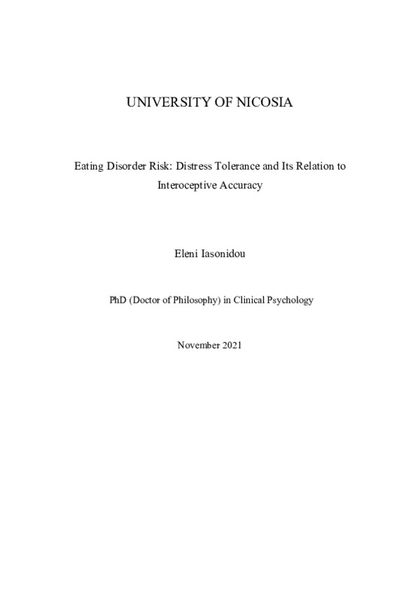 Eating Disorder Risk: Distress Tolerance and Its Relation to Interoceptive Accuracy