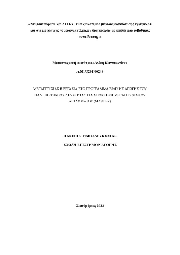 Νευροανάδραση και ΔΕΠ-Υ. Μια καινοτόμος μέθοδος εκπαίδευσης εγκεφάλου και αντιμετώπισης νευροαναπτυξιακών διαταραχών σε παιδιά πρωτοβάθμιας εκπαίδευσης