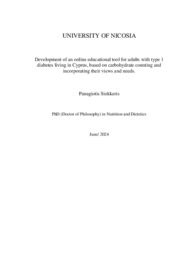 Development of an online educational tool for adults with type 1 diabetes living in Cyprus, based on carbohydrate counting and incorporating their views and needs.