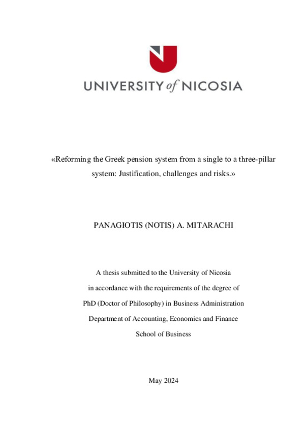 Reforming the Greek pension system from a single to a three-pillar system: Justification, challenges and risks.