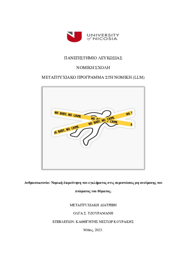 • Disposition - disappearance cases of the body of a homicide victim create "challenges" in the criminal justice process. However, although these cases are characterized as rare, they do exist, they can be solved and the perpetrator convicted - even without the most important piece of the puzzle. The subject under study in this thesis has as its main purpose to highlight this relatively rare, for the legal annals, topic, taking into account the lack of research literature, especially in Greece and Cyprus. In order to capture, as comprehensively as possible, this subject, this Master's Thesis consists of chapters and the data mentioned is result from bibliographic research. Particular emphasis is placed, in the Corpus Delicti rule, on the false confessions of suspects as well as the precarious nature of witness statements in the light of circumstantial evidence. This is followed by information relating to forensic and criminological investigation, the types of disposal of a victim's body and the characteristics of those involved. At the same time, through the discussion of important aspects of the research topic, the present study completes its theoretical part, emphasizing on the dismantling of the "no body, no murder" rule. Following the flow of the chapters, real cases are listed that occupied the common and not only opinion, in Greece and abroad, in which until today, no part of the body of the victims has been recovered. The characteristics of the cases differ based on whether the homicide is related to financial motivation, domestic violence, etc. In these cases, the facts are stated, the challenges that emerged from each type of case are examined, culminating in the Judicial crisis.