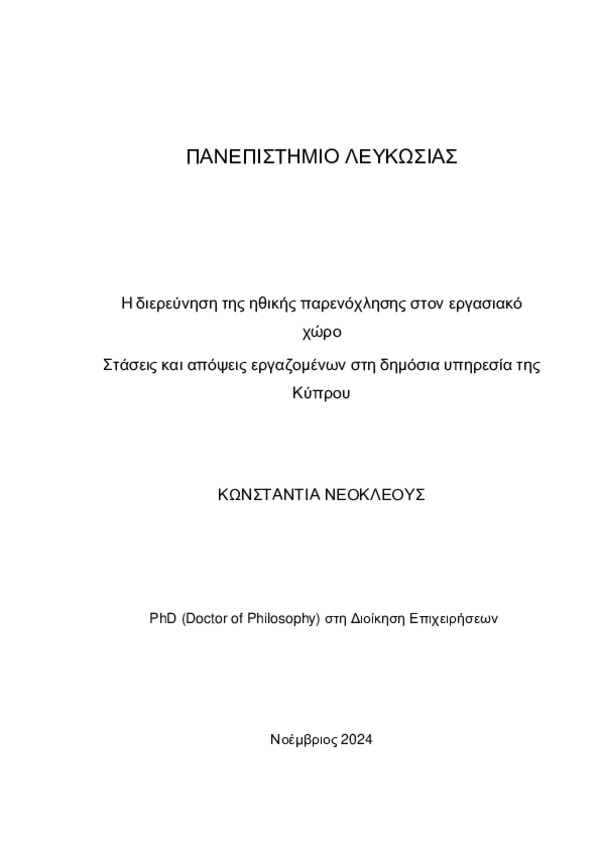 Η διερεύνηση της ηθικής παρενόχλησης στον εργασιακό χώρο Στάσεις και απόψεις εργαζομένων στη δημόσια υπηρεσία της Κύπρου