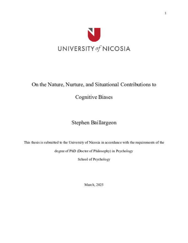 Cognitive biases are notoriously difficult to diminish. This may be because they relate to genetic or crystalized individual differences or because their presence depends more on the situation. It has been speculated that confirmation bias serves impression management purposes (Trivers, 2011),keeping our reputations high even when we’re given evidence that we are wrong about 3 something. The current research tests this using a within-participants experimental survey, measuring confirmation bias in imagined situations where changing one's mind would be public vs private to