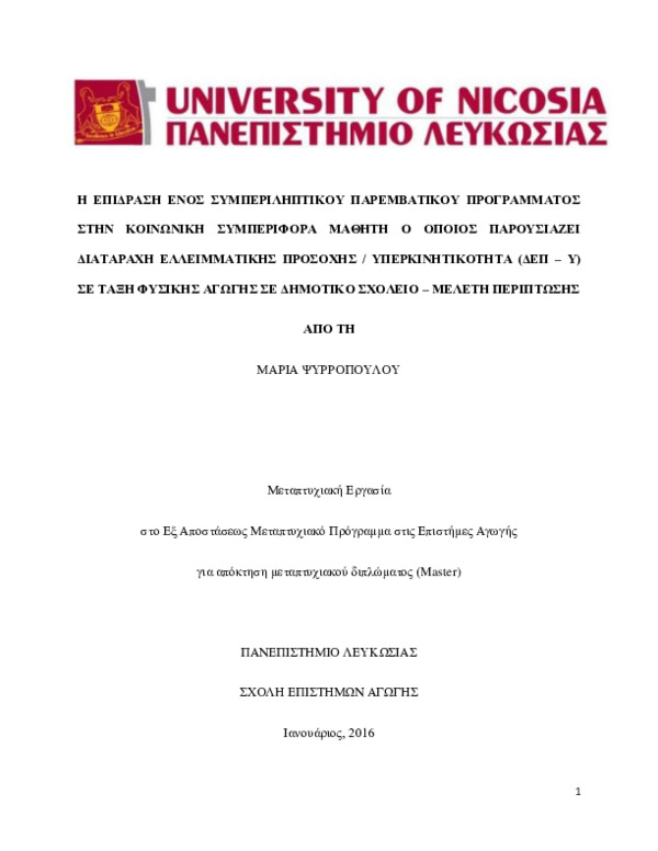Προβληματικές συμπεριφορές παιδιών στο σχολείο: Ψυχοεκπαιδευτικές παρεμβάσεις στο πλαίσιο της τάξης